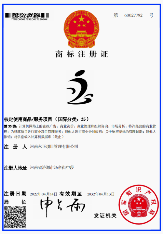 利发体育官网创立于2011年6月,公司成立至今,始终围绕服务与发展两大主题,致力于打造“力创咨询精英,争创百年永正”。为保证提供商品和服务质量,维护公司信誉,保护各方利益,公司决定注册自己的商标。2022年4月经国家知识产权局批准,公司分别取得了第60009101号和60027792号商标注册证,注册商标核定使用商品/服务项目为第42类(国际分类:42)和第35类(国际分类:35)。公司取得商标注册证后,将会以更加严格的标准按照法律法规等规定,规范各项业务操作,保障国家与公共利益,维护公平竞争的良好秩序以及各方的合法权益,接受行政机关的监管和行业自律组织业务指导,以精湛的专业技能和良好的职业操守,竭诚为客户提供优质、一流、满意的服务。