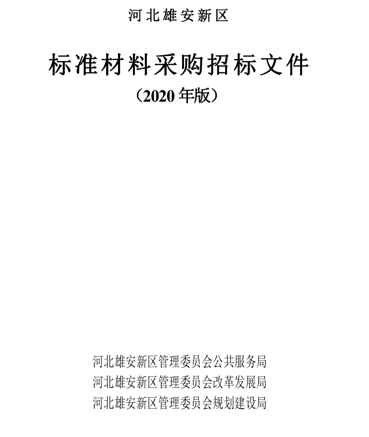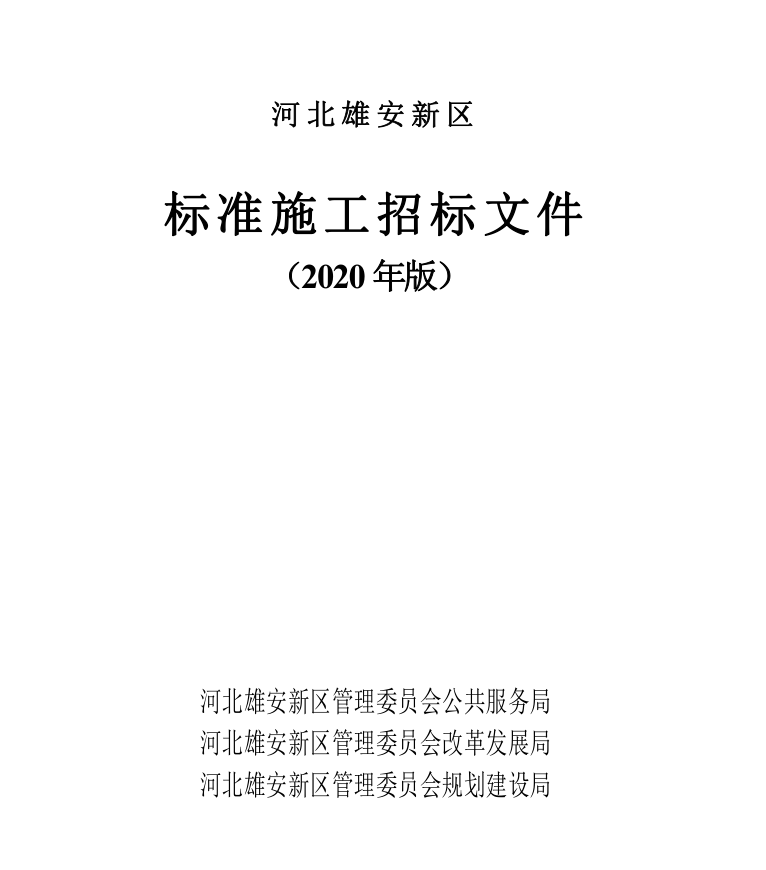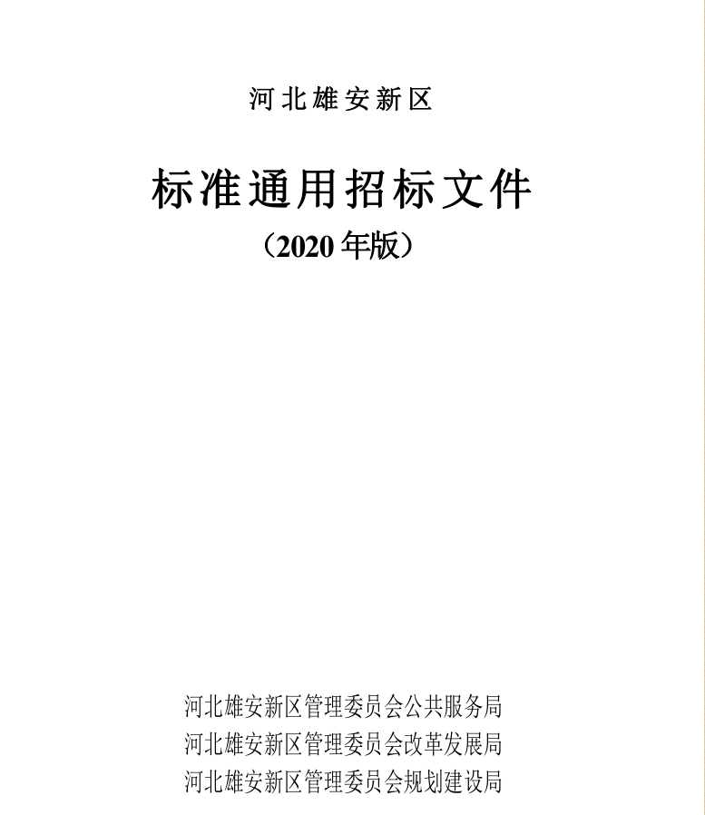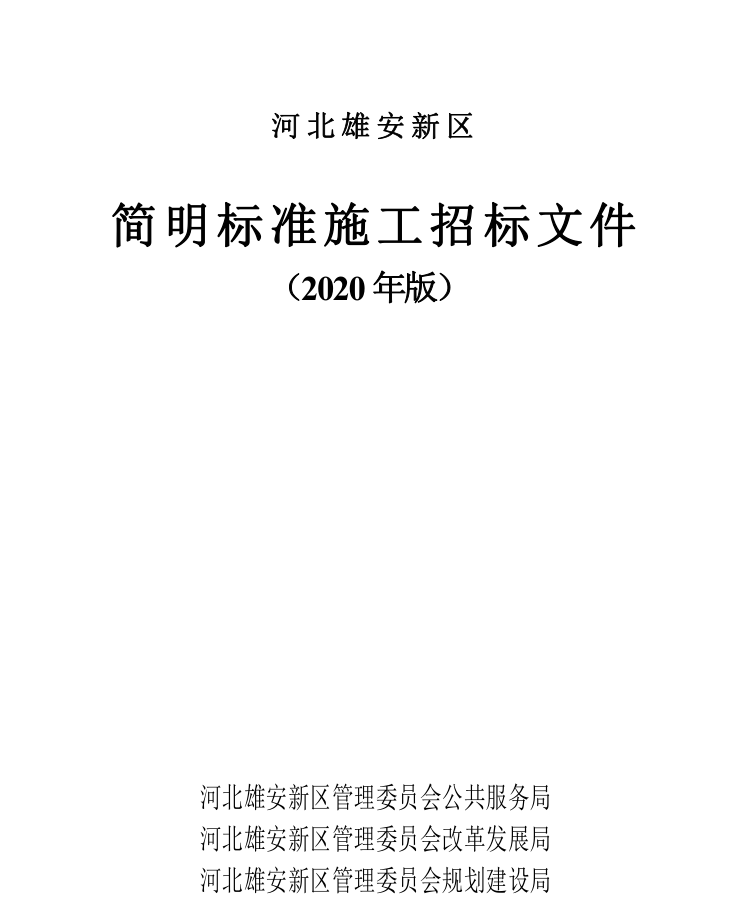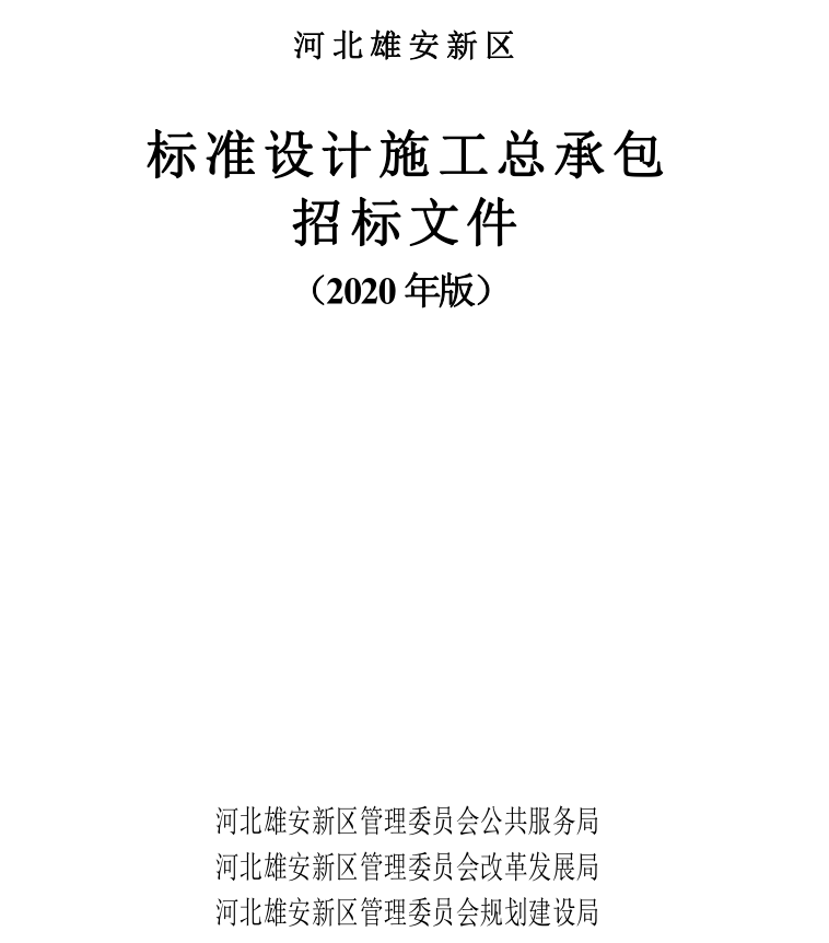 近日河北雄安新区管理委员会规划建设局等三个部门联合发布《雄安新区工程建设项目标准招标文件》(2020年版),《招标文件》里包含《雄安标准全过程咨询服务招标文件》、《雄安标准设计施工总承包招标文件》、《雄安标准新区施工资格预审文件》等共计13个文件。
