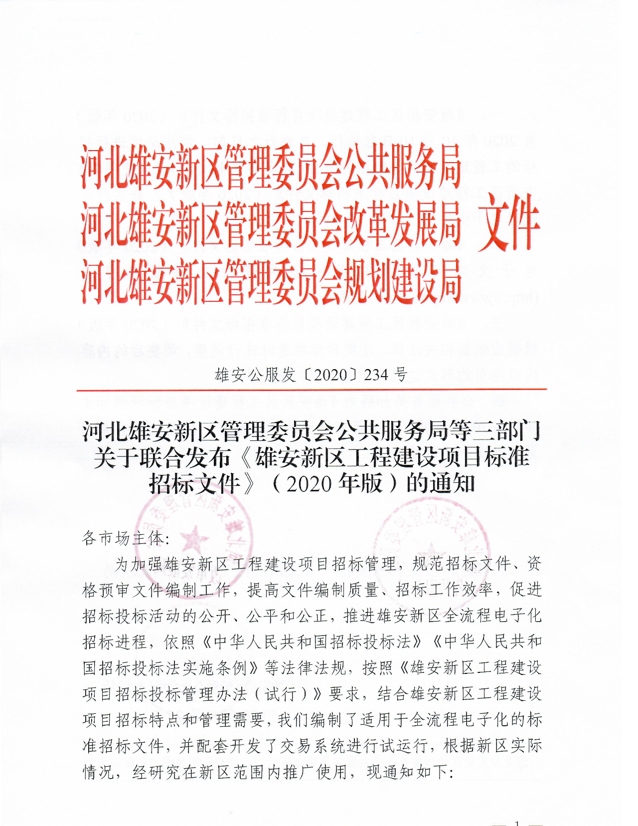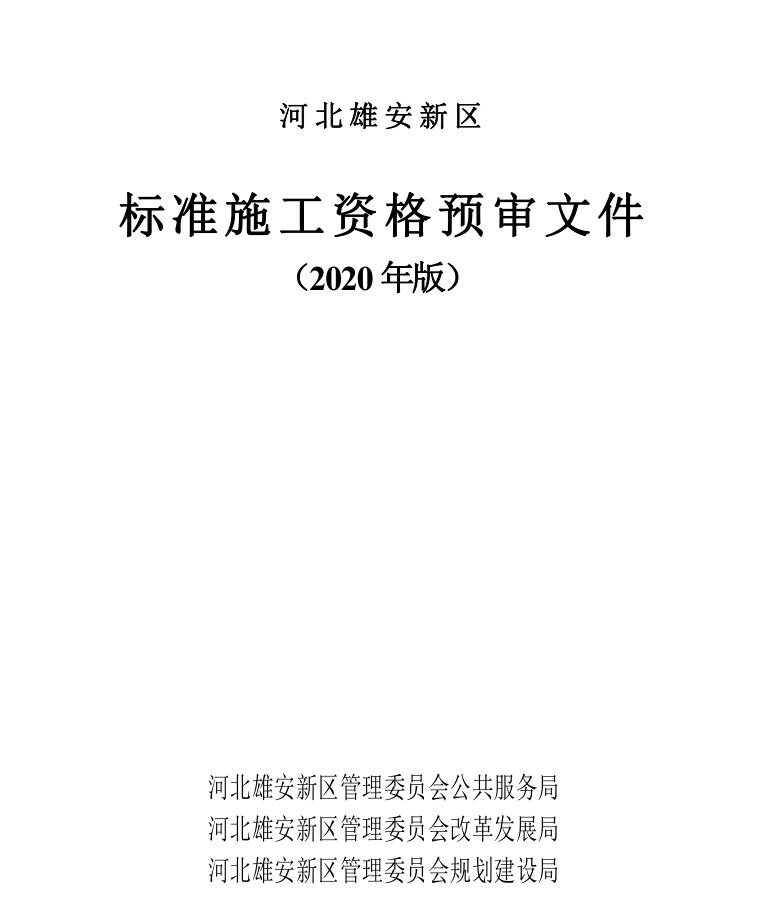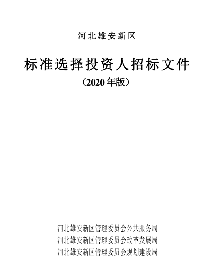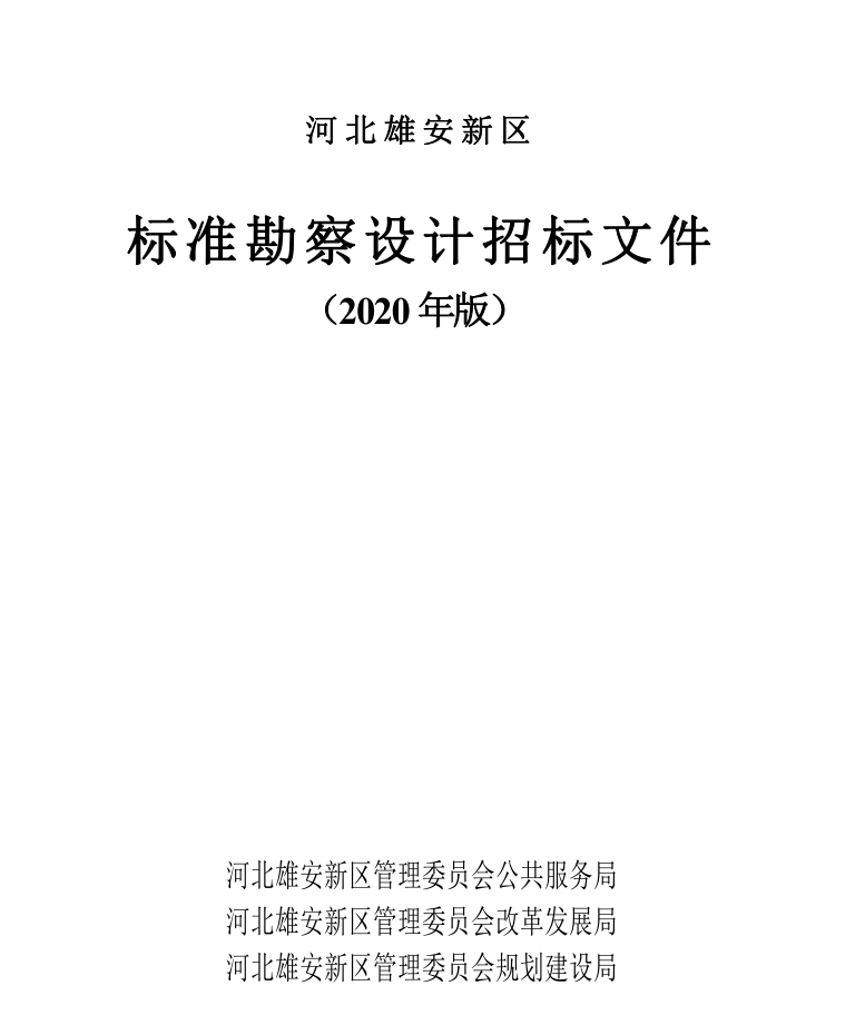近日河北雄安新区管理委员会规划建设局等三个部门联合发布《雄安新区工程建设项目标准招标文件》(2020年版),《招标文件》里包含《雄安标准全过程咨询服务招标文件》、《雄安标准设计施工总承包招标文件》、《雄安标准新区施工资格预审文件》等共计13个文件。