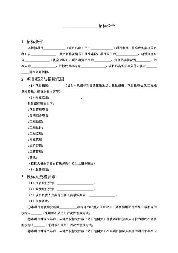 雄安新区 | 标准全过程咨询服务招标文件(2020年版)