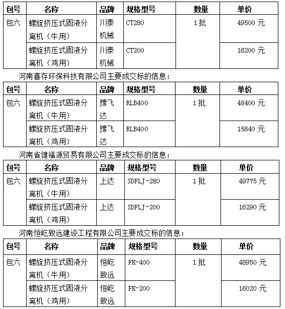 2019年粪污资源化利用项目设备采购(第一批)包六中标结果公告