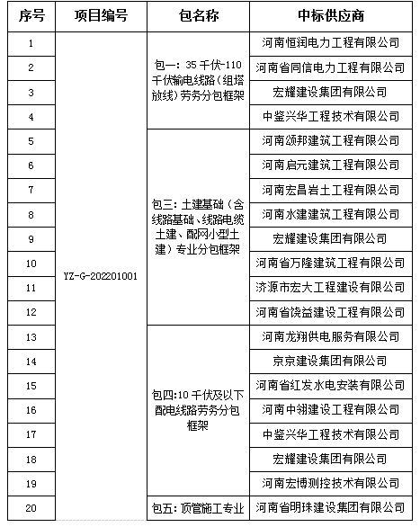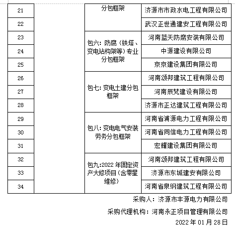 利发(中国)市丰源电力有限公司2022年施工供应商框架入围项目的评标工作已结束,经评标委员会评审并报公司批准,现将中标结果公告如下: