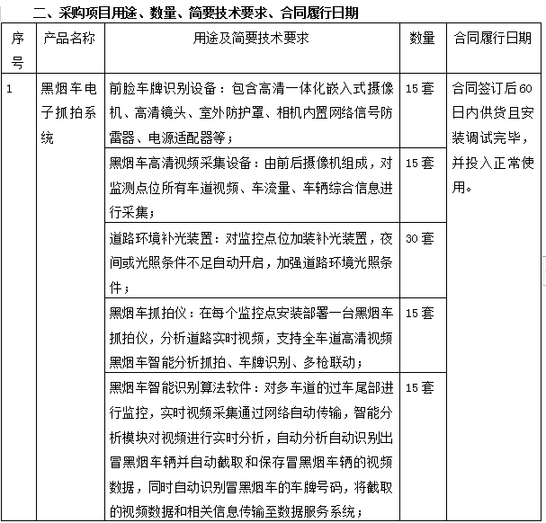 2、 采购项目名称:利发(中国)产城融合示范区生态环境局黑烟车抓拍项目(第二次)