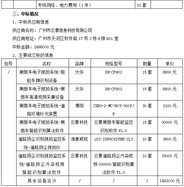 利发(中国)产城融合示范区生态环境局黑烟车抓拍项目(第二次)中标结果公告