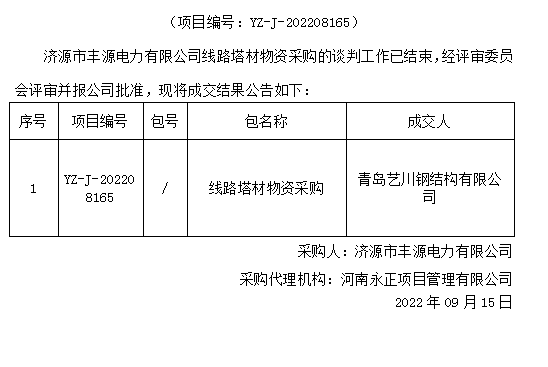 利发(中国)市丰源电力有限公司线路塔材物资采购成交结果公告