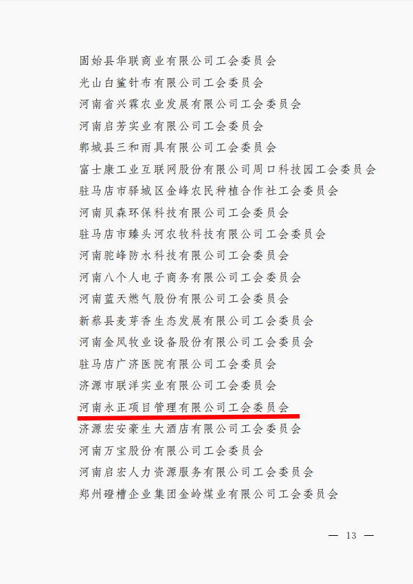 利发体育官网工会委员会被河南省总工会命名为“2022年度河南省基层工会规范化建设示范点”
