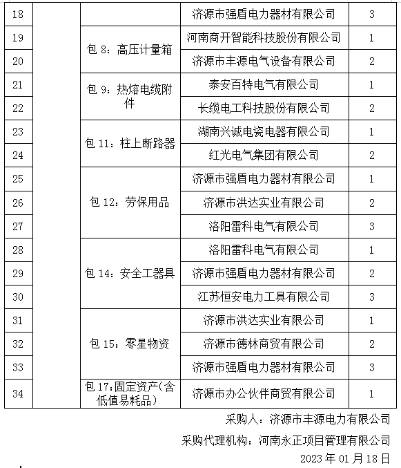 利发(中国)市丰源电力有限公司2023年物资协议库存项目中标候选人公示
