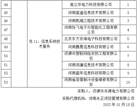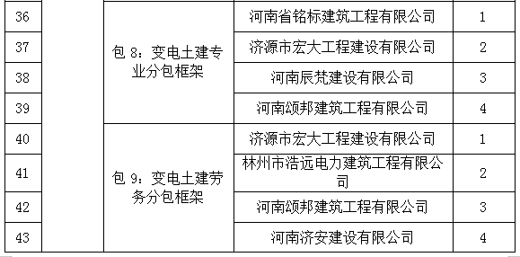 利发(中国)市丰源电力有限公司2023年施工供应商框架入围项目的评标工作已结束,依据《中标人民共和国招标投标法实施条例》、《招标公告和公示信息发布管理办法》和本项目招标文件对中标候选人公示的规定,现将评标委员会推荐的中标候选人予以公示,公示期3日。投标人或者其他利害关系人若对评标结果有异议的,请在中标候选人公示期间以书面形式提出。