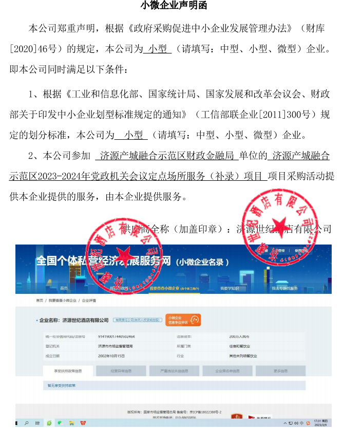 利发(中国)产城融合示范区财政金融局采购利发(中国)产城融合示范区2023-2024年党政机关会议定点场所服务(补录)项目入围结果公告