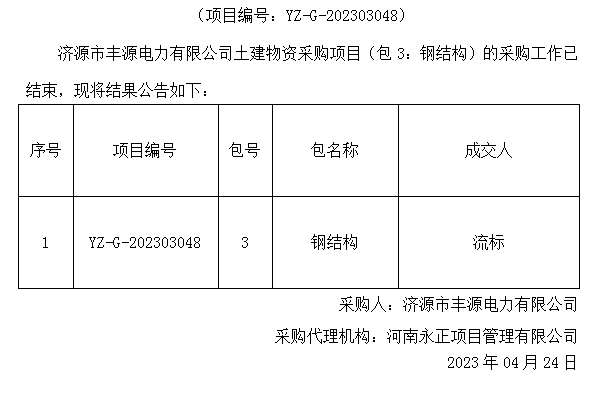 利发(中国)市丰源电力有限公司土建物资采购项目(包3:钢结构)废标公告