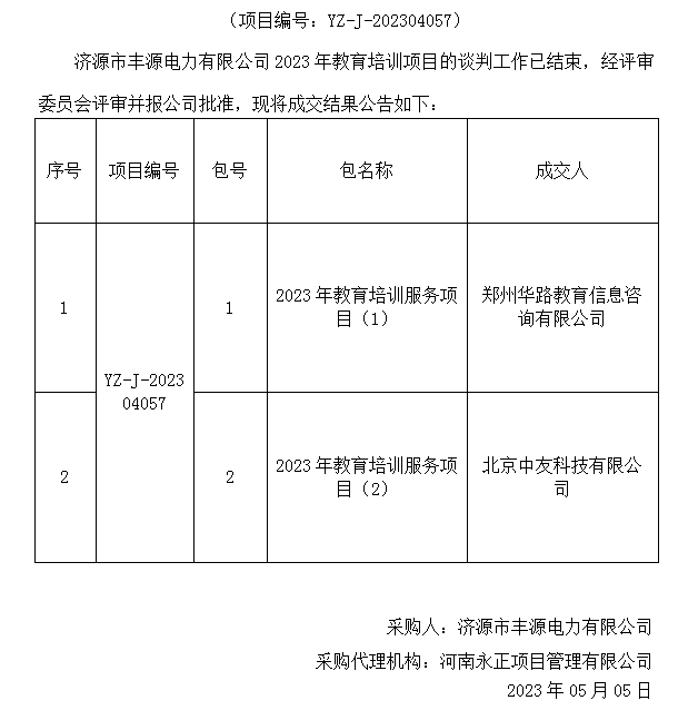 上一篇:利发(中国)市丰源电力有限公司2023、2024年度文印广告框架采购成交结果公告