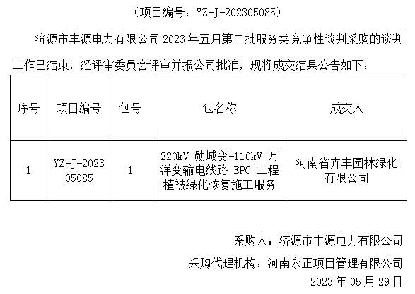 利发(中国)市丰源电力有限公司2023年五月第二批服务类竞争性谈判采购成交结果公告