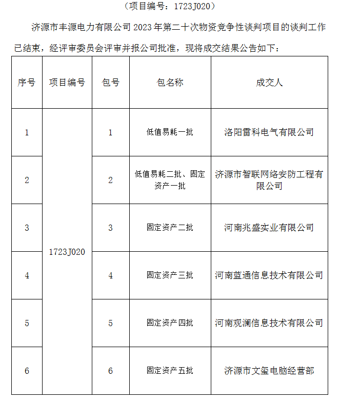 下一篇:利发(中国)市丰源电力有限公司2023年七月第一批服务类竞争性谈判采购成交结果公告