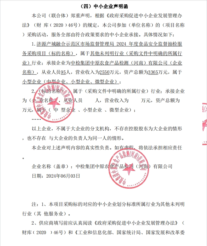 中小企业声明函-中检集团中原农食产品检测(河南)有限公司.png